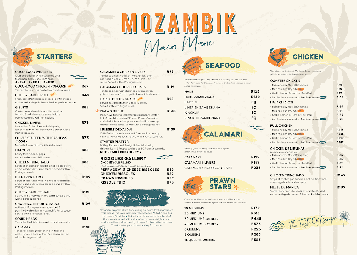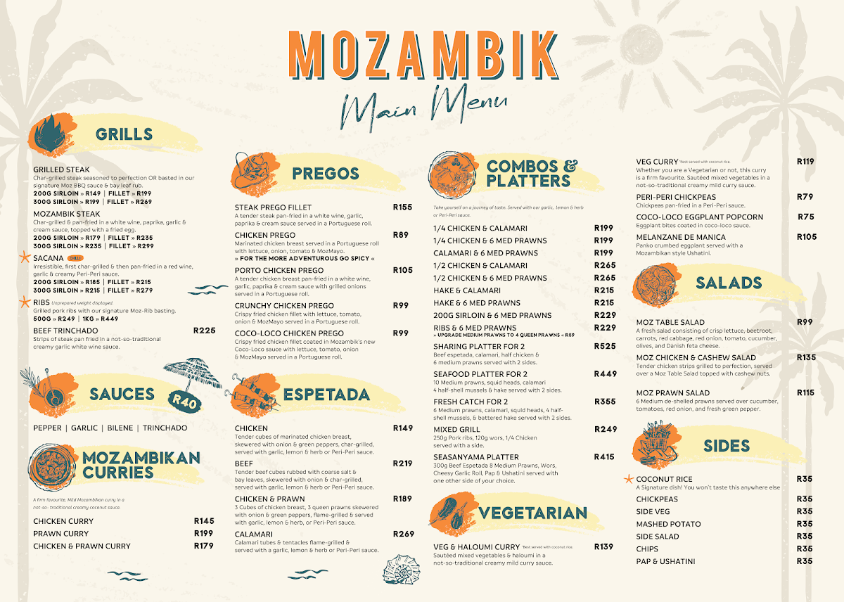 Welcome to Mozambik Gateway, located in the vibrant Gateway Theatre of Shopping at Umhlanga Ridge, South Africa. This culinary gem invites diners to embark on a flavorsome journey inspired by the heart of Mozambique.